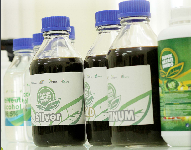 Selain fuelgrade ethanol, PT Energi Agro Nusantara jugamenghasilkan side product berupa pupuk cair yang disebutsebagai Pupuk Hayati Energo (PHE). Pengaplikasian PHE di lahansudah terbukti mampu meningkatkan produktivitas tanaman