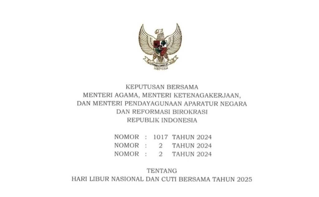 JAKARTA, 14 OKTOBER 2024 - Pemerintah mengeluarkan Surat Keputusan Bersama (SKB) Menteri Agama (Menag), Menteri Ketenagakerjaan (Menaker), dan Menteri Pendayagunaan Aparatur Negara dan Reformasi Birokrasi (PANRB) Nomor: 1017 Tahun 2024, Nomor: 2 Tahun 2024, dan Nomor: 2 Tahun 2024 tentang Hari [...]