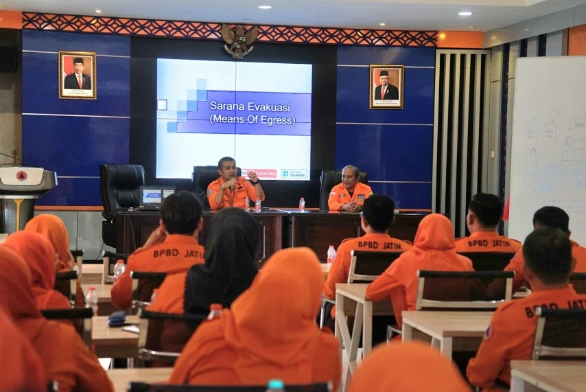 Surabaya, 23 September 2024 – Guna meningkatkan kompetensi dan kapasitas SDM pegawai dalam menghadapi ancaman bencana Kebakaran dan gempa bumi, BPBD Jatim sepanjang hari ini, Senin (23/9/2024) menggelar Pelatihan Asesmen Gedung di Ruang Siaga, Kantor BPBD Jatim.