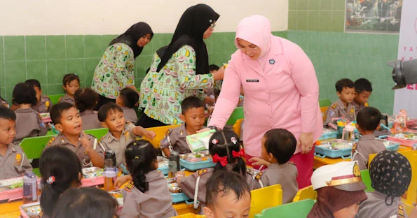 [Ketua YKB Jatim saat bagikan makan bergizi di TK Kemala Bhayangkari 78 Pamekasan]