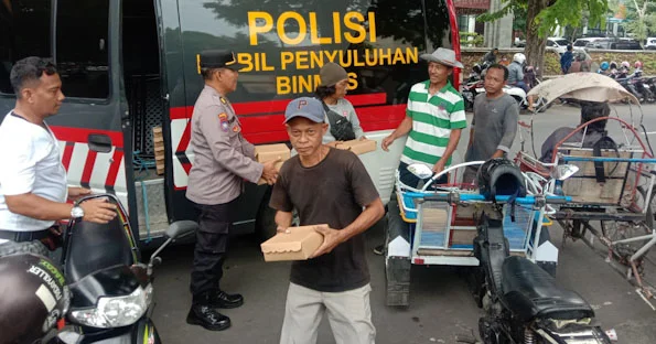 [Polresta Banyuwangi saat berbagi nasi kotak untuk warga masyarakat]